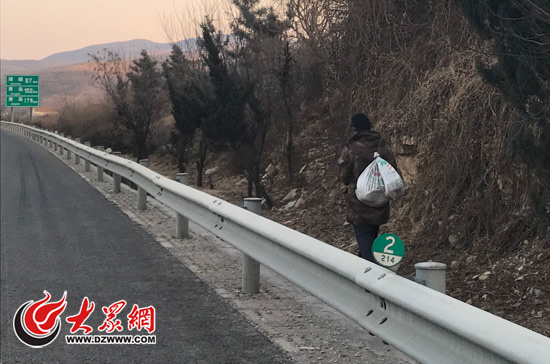 大眾網濟南1月25日訊 23日下午,濟青高速南線沂源段發生驚險一幕,一名衣衫襤褸的中年男子在高速路面上行走,高速交警發現后將其勸離。該男子稱,他打算從吉林老家步行到青島旅游。得知他身上沒有帶錢,民警只好掏出隨身的現金,讓他討飯未果時買點吃的。