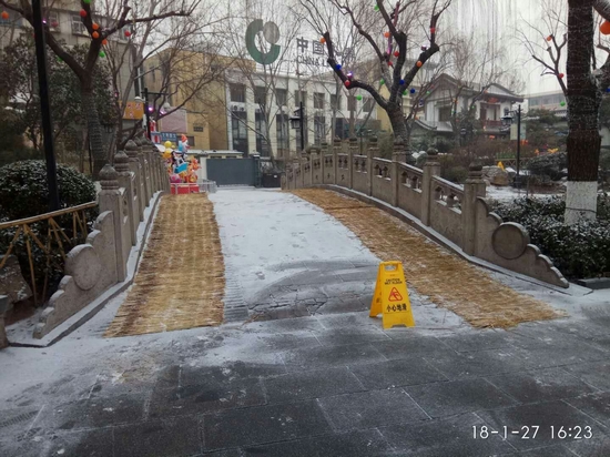 大眾網(wǎng)濟南1月28日訊 昨天,濟南迎來了一場雪,記者從濟南市園林局了解到,為保障游人安全游園賞景,濟南市園林局及市建委所屬各公園風(fēng)景區(qū)及時啟動安全應(yīng)急預(yù)案,積極清雪除冰,鋪設(shè)防滑墊,放置提示牌,口頭提醒引導(dǎo),利用廣播系統(tǒng)發(fā)布溫馨提示,多措施保障市民游客游園安全。