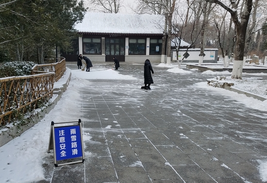 濟南各公園風(fēng)景區(qū)及時啟動安全應(yīng)急預(yù)案,積極清雪除冰