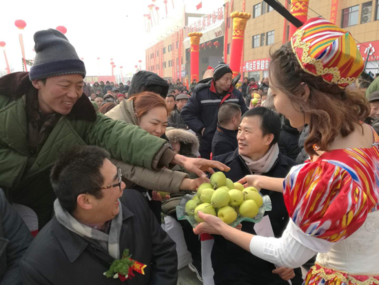 活動現場,臨沂市民爭相品嘗正宗新疆庫爾勒香梨