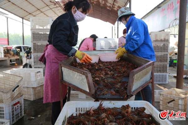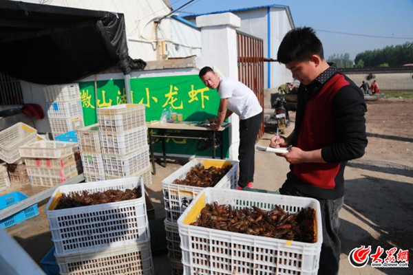 在利民管區(qū)沈運(yùn)喜水產(chǎn)集中收購點(diǎn)。記者看到,80后時尚的趙小伙開著自家商務(wù)車前來送小龍蝦。這個收購站的老板顧不上跟記者搭話,一番驗(yàn)貨稱重交易后,笑哈哈地拿著一只小龍蝦告訴記者,你瞧這鰓花雪白透亮的,說明水質(zhì)好;你看這肚皮圓肥碩大,說明品質(zhì)好,你再用手在筐里來回一劃,個個活蹦亂跳,說明體質(zhì)健壯。我們微山湖的小龍蝦發(fā)往外地,都是100斤一包,外地小龍蝦都是40或50斤一包,內(nèi)行人不看牌子,一看包裝就知道是我們微山湖的。因?yàn)槲⑸胶男↓埼r耐擠壓,成活率高,價(jià)格當(dāng)然要比外地的小龍蝦要貴1-2元一斤,微山湖小龍蝦在全國十分搶手,很受客戶歡迎。我們的小龍蝦都銷往北京、上海、南京,就我這個收購站,旺季一天也往外走個五千斤。記者發(fā)現(xiàn),前來送小龍蝦的漁民有開著小卡車的,有也有開著面包車來的,送貨收送一律都是現(xiàn)金結(jié)賬,漁民點(diǎn)著鈔票樂的個個合不上嘴。