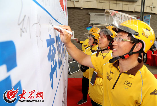 大眾網(wǎng)濟南5月17日訊 今天上午,濟南交警市中大隊聯(lián)合美團、餓了么兩家企業(yè)共同舉行交通安全主題活動,200名外賣配送員齊聚經(jīng)四路萬達廣場,簽字承諾遵守交規(guī)、文明出行。隨著外賣行業(yè)的快速發(fā)展,部分外賣小哥一味追求速度,逆行、闖紅燈導致交通事故時有發(fā)生。公安部交管局下發(fā)《關(guān)于警企共治創(chuàng)新外賣行業(yè)電動車交通違法治理工作的通知》,要求各地公安交管部門建立警企協(xié)作、信用懲戒等機制,強化對外賣行業(yè)電動車交通違法的治理。