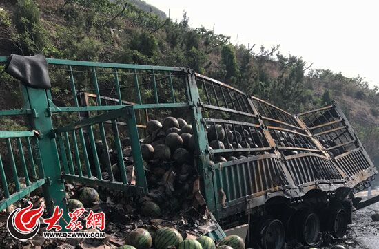 大眾網濟南5月18日訊 14日早晨7點左右,青蘭高速蘭州方向210公里處(沂源段)一輛重型半掛車自燃起火。高速交警沂源大隊、消防人員接警后迅速趕赴現場,發現著火的是一輛拉西瓜的車,滿車西瓜已被烤得烏黑,散發出濃濃的焦味。明火被消防人員撲滅后,民警詢問駕駛員得知,著火是由車輛輪胎抱死、剎車片過熱引起的。駕駛員雖然及時發現火情并用車載滅火器滅火,但火勢蔓延太快已經無法控制,所幸無人員受傷。(大眾網-山東24小時記者 賀輝 通訊員 王宗濤 公慧 陳茂明)