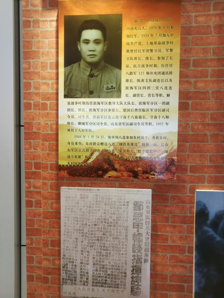 朱村抗日紀念館中展出大眾日報相關報道版面