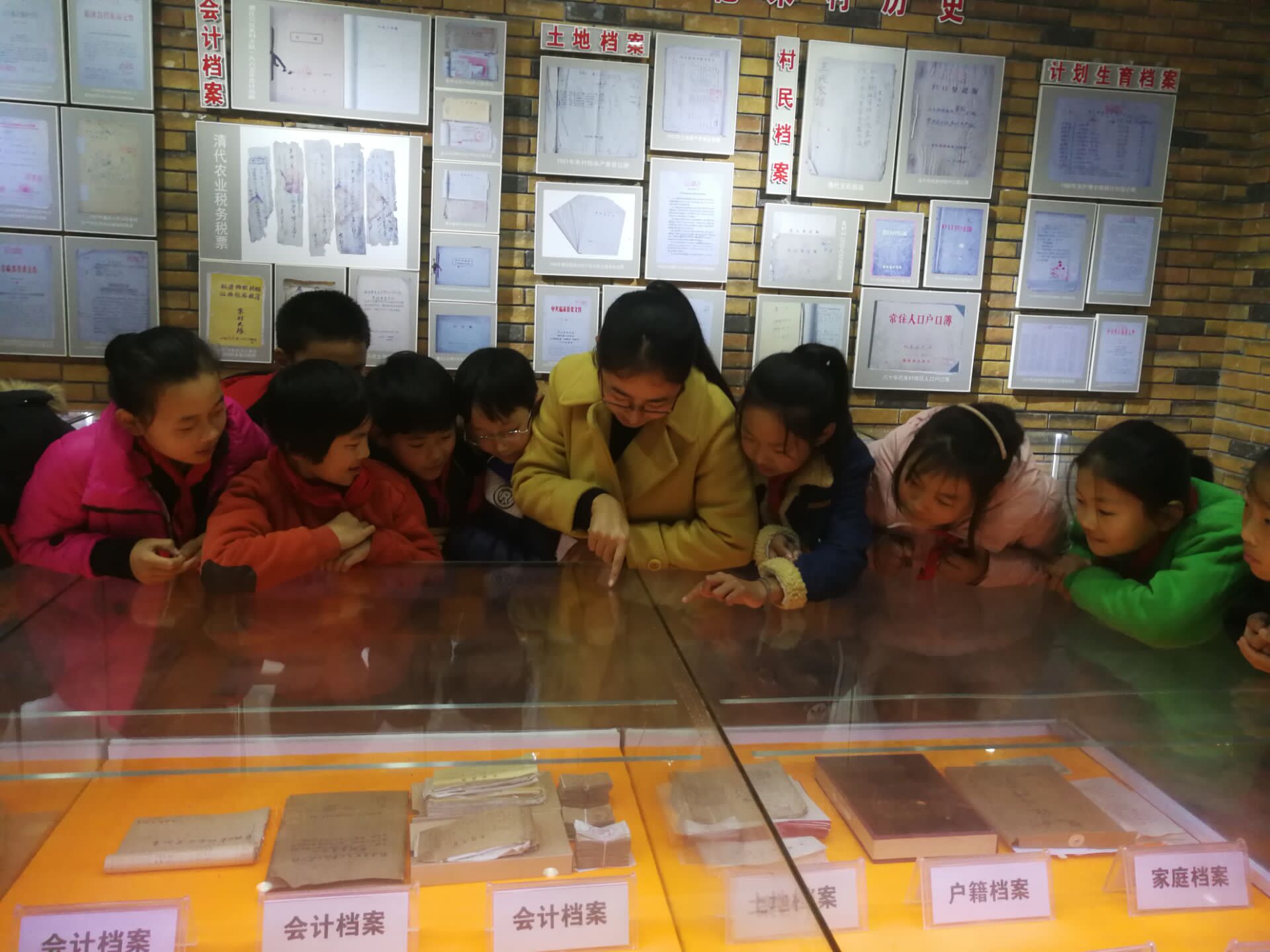朱村小學老師帶領孩子們參觀朱村全省唯一的村級檔案館