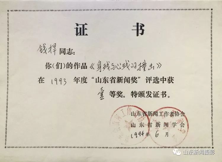《身殘與心殘的撞擊》獲1993年山東新聞獎(jiǎng)一等獎(jiǎng)