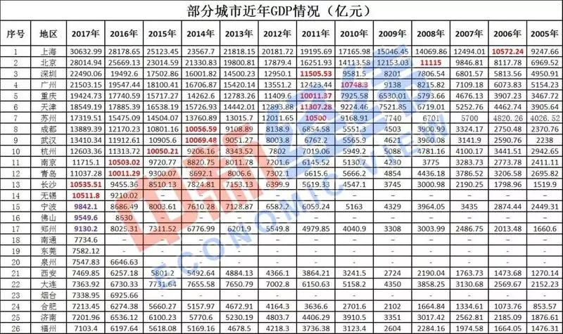 數據顯示,除上述17城市外,2017年GDP總量超過7000億元的還有南通、東莞、泉州、西安、大連、煙臺、合肥、濟南、福州等9城市。雖然“不唯GDP論英雄”已成各地共識。但對于一座城市而言,這個全球通用的指標體系依然是衡量經濟社會發展的標尺之一。上述9城市已有多地對躋身“萬億俱樂部”作出規劃,可謂“萬億俱樂部”后備軍。