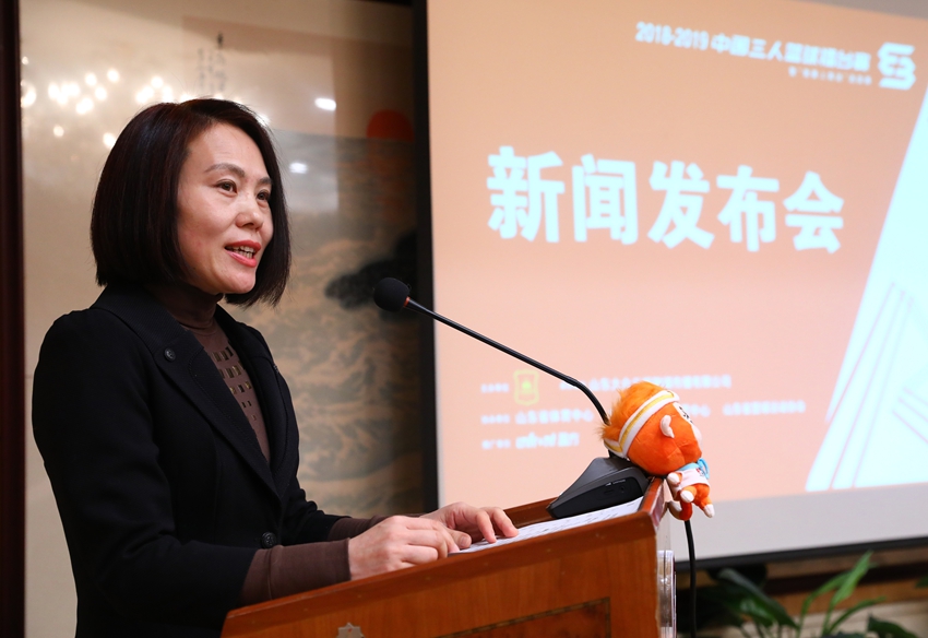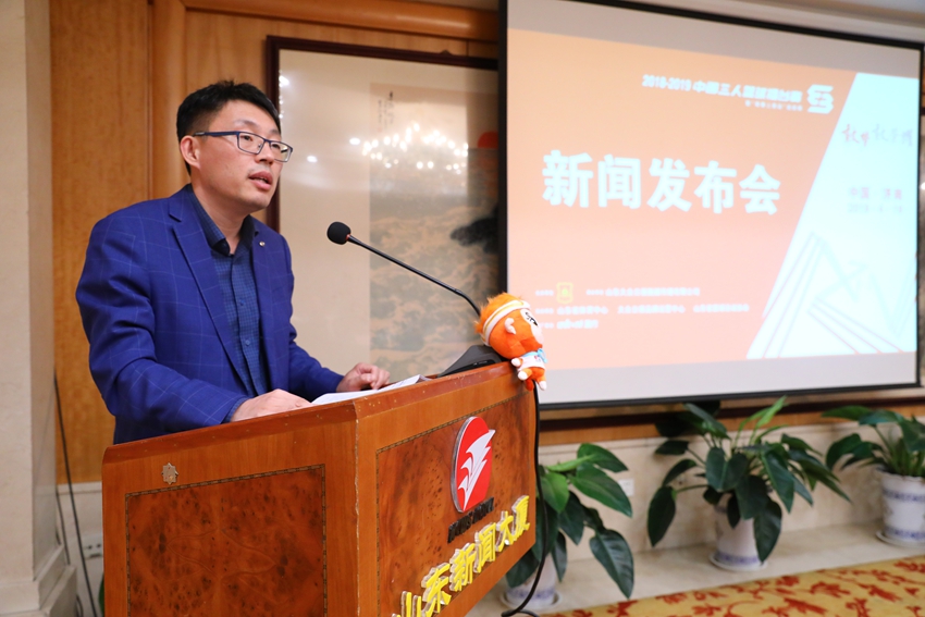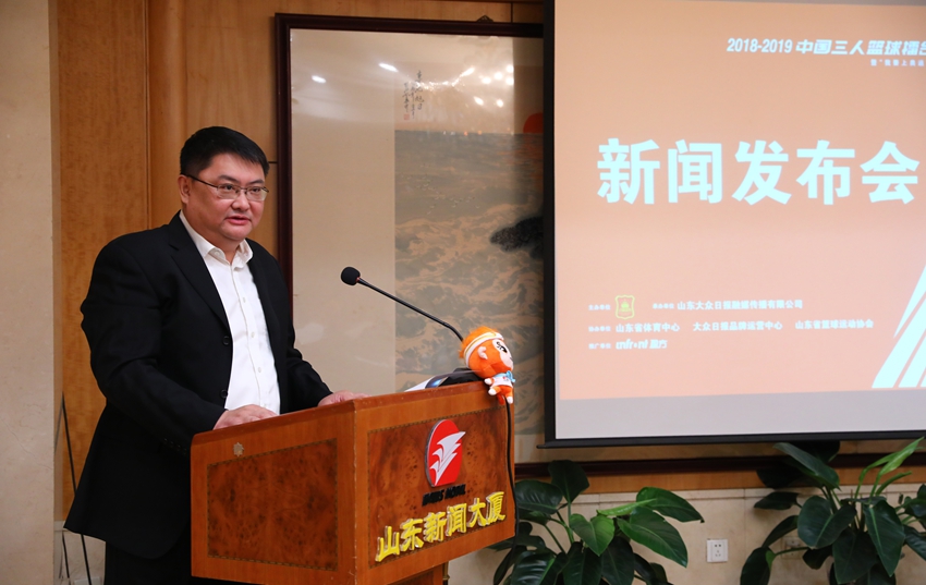 4月19日上午,2018-2019中國三人籃球擂臺賽暨“我要上奧運”選拔賽第一階段華北分區賽新聞發布會在山東新聞大廈舉行。山東省籃球運動協會會長魏淑波,山東大眾日報融媒傳播有限公司董事長于江,山東省體育中心黨委委員、組織宣傳部部長王立雯,盈方體育傳媒(中國)有限公司籃球事業助理總監呂曉亮出席新聞發布會,介紹比賽相關情況并回答了記者提問。