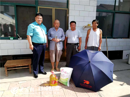 韓向勇(左一)為村內(nèi)老人送去食用油、面粉等生活用品