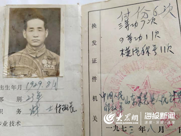 他說(shuō),“烈士”許化水當(dāng)時(shí)并未犧牲,還參加了搶占上海戰(zhàn)役受到獎(jiǎng)勵(lì)!許然向記者展示了父親許化水生前的物件,并講述了父親許化水曾參加過(guò)魯南戰(zhàn)役(菏澤戰(zhàn)役)、抗美援朝及復(fù)員回家后的故事。