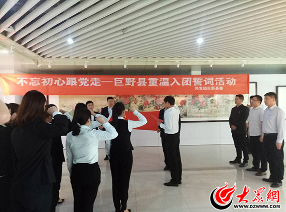 為增強團員青年們的政治榮譽感,凝聚團員共識和力量,座談會后,集體開展了“不忘初心跟黨走-巨野縣重溫入團誓詞”活動。面對團旗,團員們高舉右拳莊嚴宣誓:“我志愿加入中國共產主義青年團,堅決擁護中國共產黨的領導,遵守團的章程,執行團的決議,履行團員義務,嚴守團的紀律,勤奮學習,積極工作,吃苦在前……。