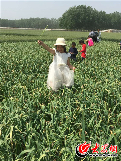 大眾網定陶拍客團攜手小記者團實踐拔蒜薹