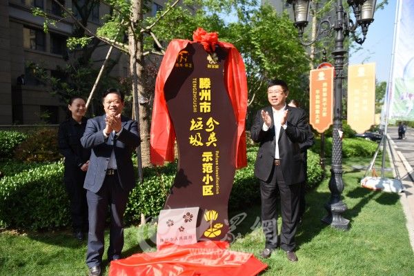 共同為“滕州市垃圾分類示范小區(qū)”示范牌揭牌