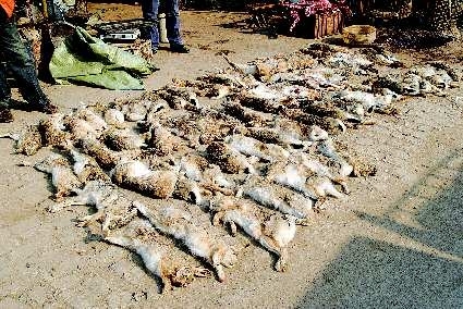 ▲在六戶村,民警在三家野味店查獲的野兔。嵇磊顧松攝