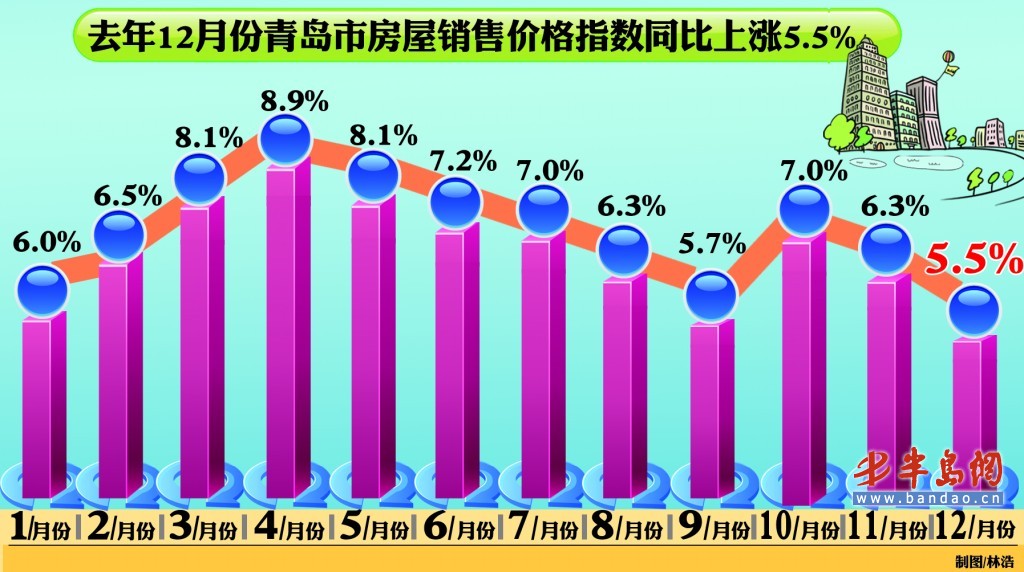 國家統計局本次關于去年12月份房屋銷售價格指數的分析報告算是為島城去年樓市畫上了一個句號。從去年5月份開始,島城新建住宅房屋銷售價格指數曾連續5個月保持環比零漲幅的局面,價格不漲不跌;但到去年10月份開始,這一均衡局面被打破,又出現了連續三個月的上漲軌道。