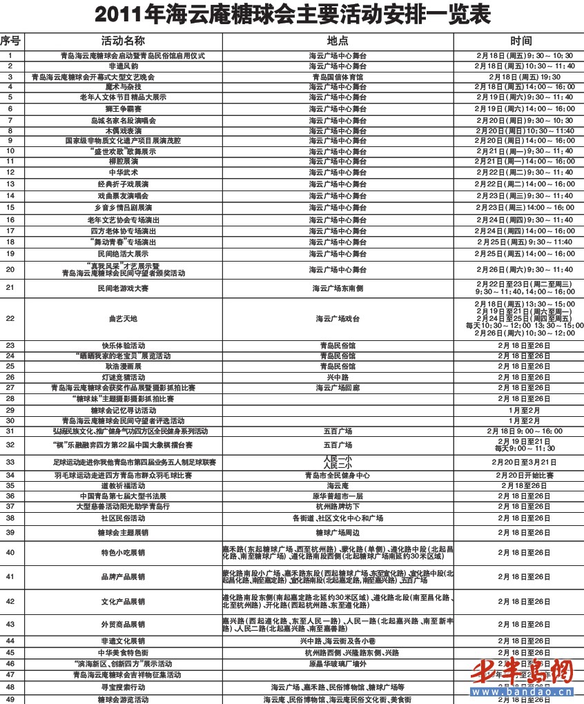 2011年海云庵糖球會(huì)主要活動(dòng)安排一覽表