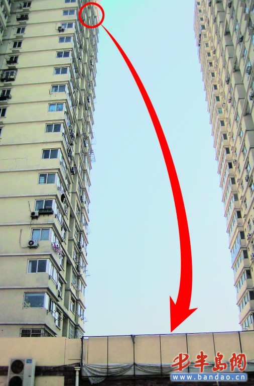 “上午9時左右,我正在2號樓里干活,突然一位居民慌慌張張地從電梯里跑了出來,哭著說有個人從樓上跳了下來,摔死了!鼻鍧嵐だ钕壬嬖V記者 ,他跟這位女士認識,就住在男子落地處的樓上,當時她聽到一聲巨響,還以為是南京路上出了車禍,就打開窗戶往下看了看,沒想到一看嚇了一大跳,有一個人趴在2樓的平臺上,身下有一大攤血跡,她這才意識到有人跳樓了,趕緊報了警!斑@個小伙子就在2號樓上住,我們常見到,知道他 28歲,但不知道姓什么!崩钕壬f。