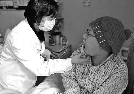 中國工程院院士、上海交通大學(xué)醫(yī)學(xué)院教授、博士生導(dǎo)師陳賽娟(左)正在仔細(xì)檢查張廣秀的身體狀況。 《黨建》供圖