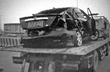 被拖走的肇事小轎車(chē)。 尉偉 攝