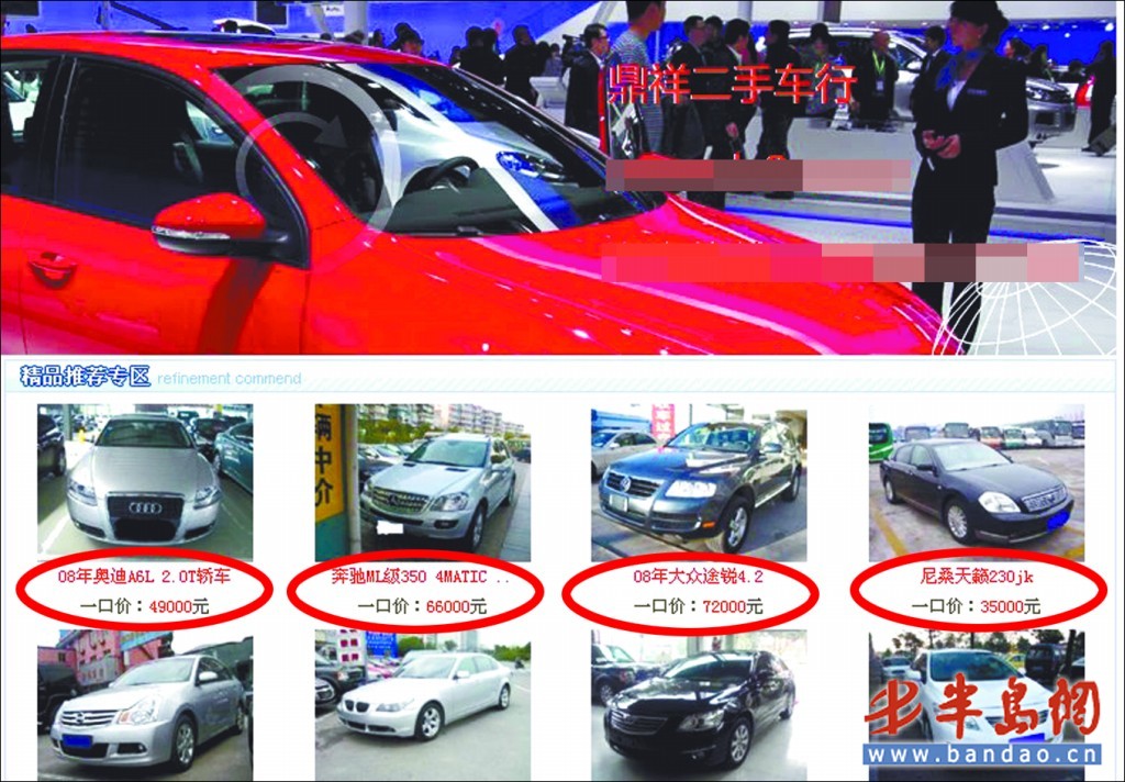 2008年奧迪轎車4.9萬,奔馳轎車6.6萬……近日,平度市民高先生向記者反映,平度一家名為“鼎祥二手車行”的網站掛出了數十款名貴車,價格最高的不足10萬元 ,但是如果要看車需要先交1000元的看車費。記者調查發現 ,這家二手車行沒有在工商部門注冊,并且向記者提供的地址每次都不一樣,而且對外標榜的為法院抵押車和海關查扣車等也都是純屬虛構。記者了解到,抵押和查扣車都需要經過評估后進行公開拍賣,不可能流入二手車市場。