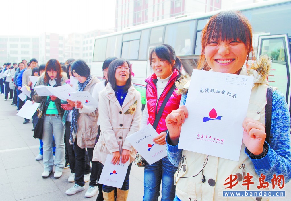 島城出現(xiàn)血荒大學(xué)生紛紛伸出援助之手,10月31日,本報(bào)聯(lián)合市中心血站發(fā)起愛心獻(xiàn)血征集令的第二天,市中心血站采血車開進(jìn)青農(nóng)大,沒想到10分鐘之內(nèi)就擁上來30多位學(xué)生排隊(duì)獻(xiàn)血,并且隊(duì)伍越排越長(zhǎng),全天共有269人奉獻(xiàn)愛心,其中九成左右的學(xué)生是第一次獻(xiàn)血,很多人通過這次獻(xiàn)血了解到不少獻(xiàn)血的常識(shí)。此外,市民街頭獻(xiàn)血仍然很踴躍,當(dāng)天熱心市民街頭獻(xiàn)血116430ml,遠(yuǎn)遠(yuǎn)超過征集令首日獻(xiàn)血量。