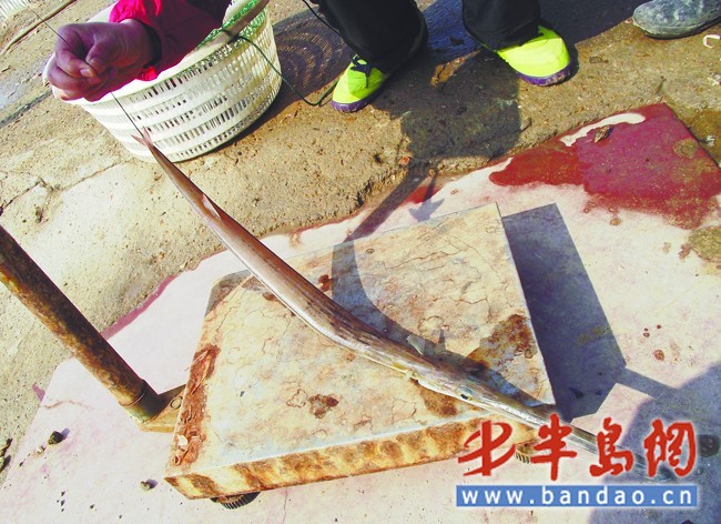 隨后,記者聯系到開發區水產技術推廣站,一位劉姓工作人員告訴記者,經過初步鑒別,該魚應該是煙管魚 ,屬煙管魚科。“該魚在東海、黃海都有產出,但數量很少,在我國南海海域比較多見。”該工作人員告訴記者,該魚屬于非冷水魚類,很少在青島近海出現。“該魚可以食用,也可以入藥。”雖然目前暫不能分析這條魚出現在青島近海的原因,但該工作人員對這條煙管魚的食用和藥用價值給予了肯定。