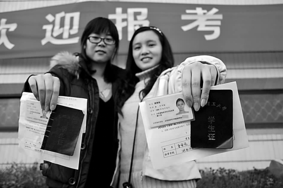 兩名學(xué)生展示考研確認(rèn)信息所需要的相關(guān)證明。