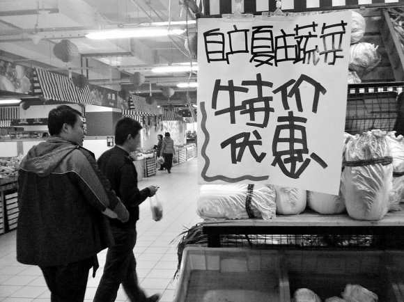 記者調查多家超市和農貿市場了解到,后者銷售的不少蔬菜價格都要高出前者。如農貿市場里西紅柿的價格在2.5元—3元/斤,黃瓜3元/斤、圓白菜2.5元/斤、白菜1.5元/斤,而在家樂福、大潤發、沃爾瑪等多家大型超市中,這些蔬菜的價格多在每斤1元左右,有超市黃瓜和白菜的售價甚至在每斤1元以內。