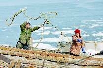 像李國勛這樣的還有不少。記者了解到,16日下午,幾條大型漁船在海里走了幾遭,把冰面打開了幾道大豁口,這給其他小漁船搶收扇貝帶來了好機會。從16日晚開始,養殖戶陸續開工。據說,當晚10點半就有漁船出動了,這在以前是很少見到的。