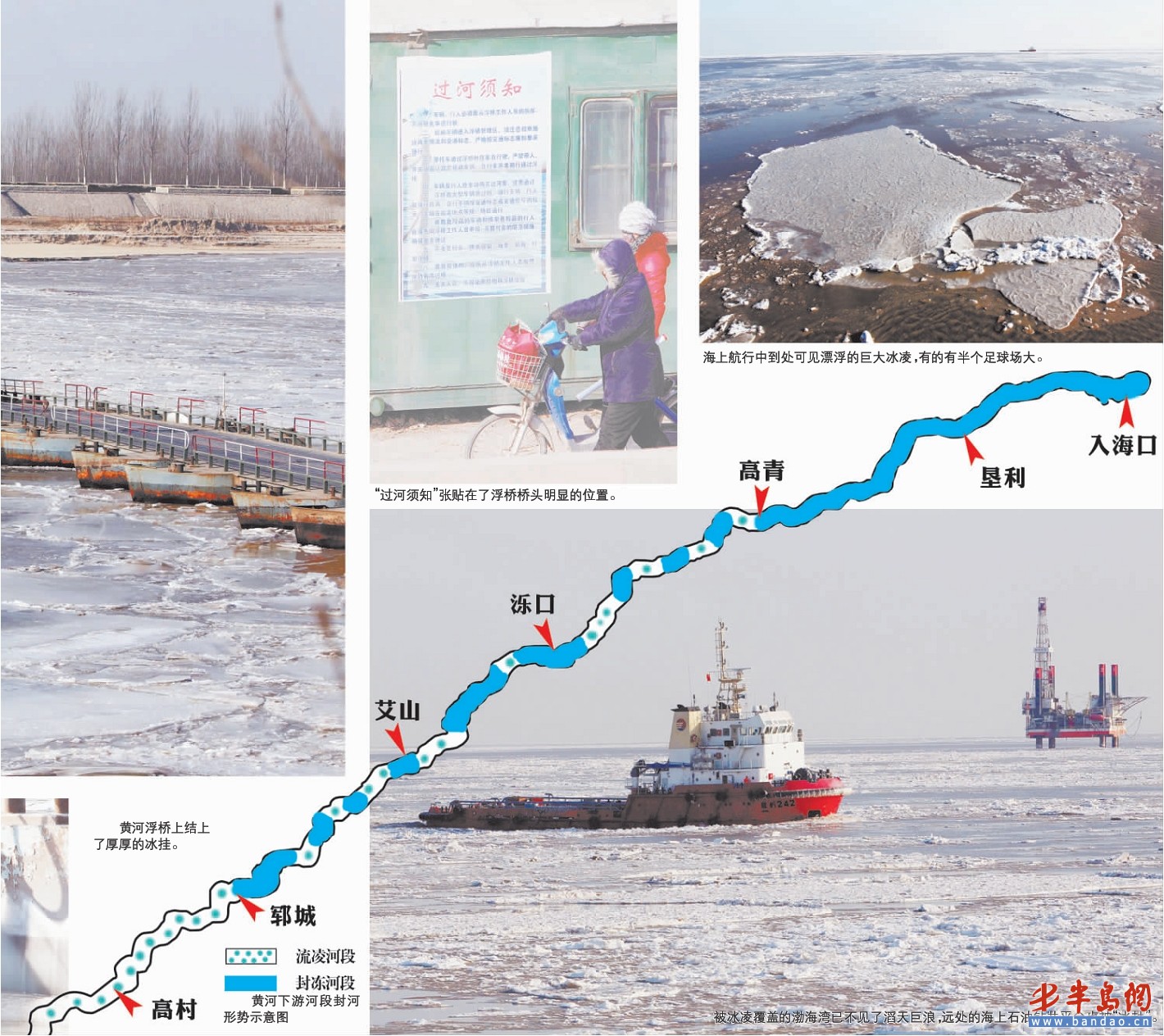 根據(jù)監(jiān)測,截至19日14時,黃河山東段牡丹劉莊以下河段淌凌,淌凌密度為10%至30%,冰塊面積一般為0.5平方米至15平方米,冰厚1厘米至15厘米。