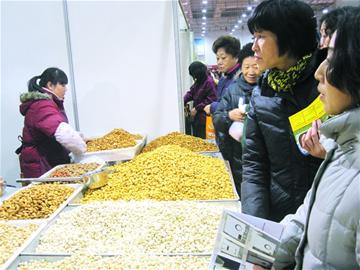 北京的驢打滾、天津的大麻花、甘肅岷縣的當(dāng)歸……來(lái)自全國(guó)各地的特產(chǎn)齊聚位于山東青島嶗山區(qū)的國(guó)際會(huì)展中心,數(shù)萬(wàn)名市民涌進(jìn)展會(huì),爭(zhēng)相購(gòu)買(mǎi)既有地方特色又物美價(jià)廉的年貨。