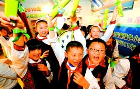 5月5日,山師附小的100名小學生順利完成了首批全國“綠色小超人”成長計劃培訓。該計劃是中華環境保護基金會與百勝集團聯手打造的環保實踐項目,扶持高校社團與小學生共同進行環保實踐,培養掌握低碳環保知識、自覺宣傳綠色生活理念、擁有環保創意的“綠色小超人”。
