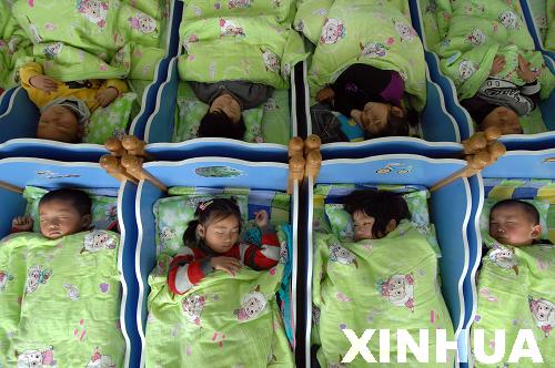 5月10日,在山東省乳山市徐家鎮(zhèn)中心幼兒園,孩子們在寢室里午休。新華社記者 郭緒雷 攝