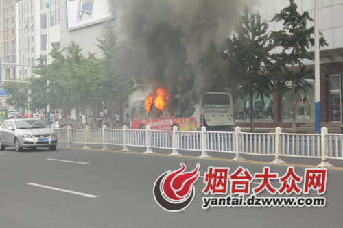 7月6日下午1時許,煙臺市區南大街路段上,一輛21路公交車疑似自燃著起大火,由于火勢兇猛,短短幾分鐘公交車便被燒得面目全非,所幸司乘人員撤離及時,沒有受傷。