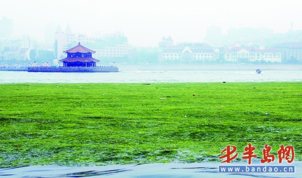 青島灣出現大面積滸苔