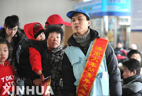 新華網山東頻道1月12日電 春運開始后,濟南小伙子李雨晨每天來到濟南火車站的愛心服務站,熱情地為有困難的旅客查詢車次、指引候車區、搬運行李,以幫助他們順利登上火車,被大家親切稱為“送站哥”。