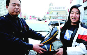 3月6日,濟南天橋交警大隊的民警來到天橋晚晴老年公寓,為百歲老人王朝英過生日,從1992年起,天橋交警大隊民警開始義務照顧老人,至今已20年了,民警們經常幫助老人洗衣、看病,前幾天還帶老人游覽了大明湖。這些年來,交警大隊民警換了一茬又一茬,而照料老人的“愛心接力棒”卻一直延續著。 圖為6日,王朝英老人在她的交警“兒女”的陪伴下喜過百歲壽辰。 本報記者 陳文進 本報通訊員 黃翌 攝影報道