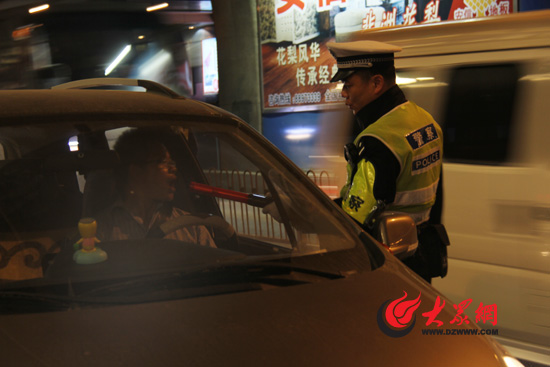 4月9日晚,一位行經北園大街和北關北路路口的司機接受酒精吹氣測試