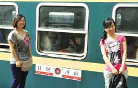 7月1日,兩名第一天參加工作的90后“高姐”在列車內布置餐桌。 7月1日開始,鐵路濟南客運段新招收的124名90后“高姐”經過專業培訓和考試后走上工作崗位,正式為旅客提供服務,這批新生力量的加入將滿足當日鐵路大面積調圖后增加車次、保證服務質量的需要。新華社記者徐速繪攝