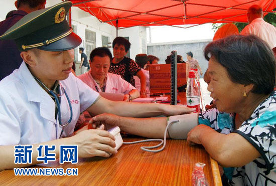 7月30日,邊防軍醫(yī)在為村民義務(wù)測量血壓。新華社記者朱崢攝