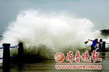 今年第9號臺風(fēng)“達維”和第10號臺風(fēng)“蘇拉”雙雙來襲,山東、江蘇、上海、浙江、福建、臺灣等省市受到影響。2日,山東省氣象臺發(fā)布史上首個臺風(fēng)紅色預(yù)警。圖為8月2日下午5時許,受臺風(fēng)“達維”影響,青島音樂廣場附近掀起近10米高的巨浪。 本報記者 張曉鵬 攝