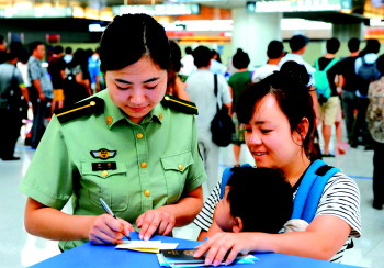 8月16日,邊檢警官在為出境旅客提供服務。
