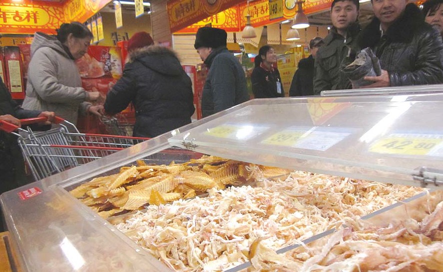 ◤前期抽檢的4個魷魚絲產品有3個都不合格。本報記者 尹明亮 攝