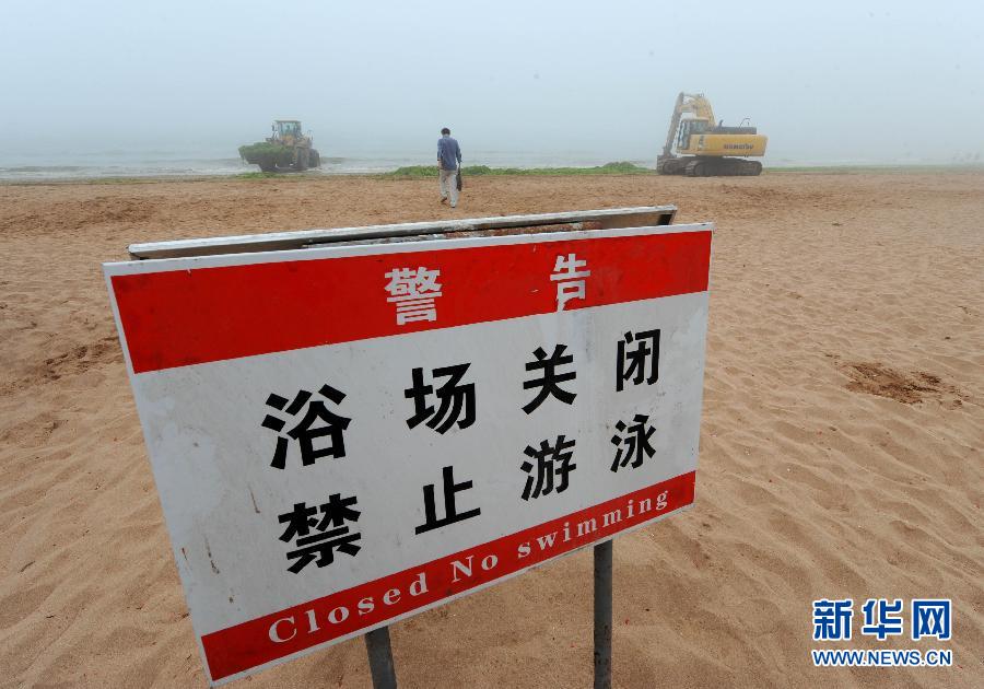 7月1日,青島第三海水浴場擺出“浴場關(guān)閉”的警示牌。