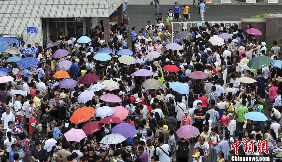 7月7日,近萬名小學應屆畢業生參加濟南兩所中學舉行的小學升初中考試,萬余“小升初”陪考家長,忍受小暑天35℃高溫的烈日“烘烤”毅然場外守候。中新社發 張勇 攝