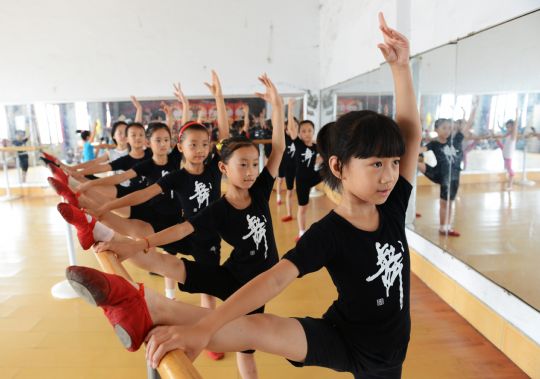 7月10日,濱州市鄒平縣的小學生在進行形體訓練。近日,鄒平的中小學生根據自己的愛好紛紛參加舞蹈、繪畫、書法等各種才藝學習,以豐富自己的暑假生活。