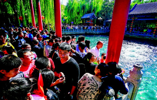 □記者 房賢剛 報道 10月2日,濟南第一泉風景區游客如織,幾呈“井噴”狀態,景區也接受了客流高峰考驗。