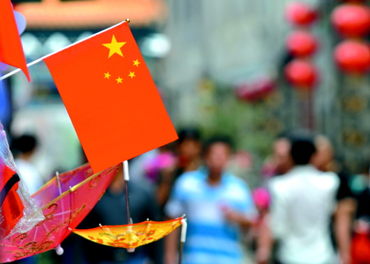 國慶假期,淄博周村古城內(nèi),商家門口掛有各式國旗,節(jié)日氣氛格外濃郁。