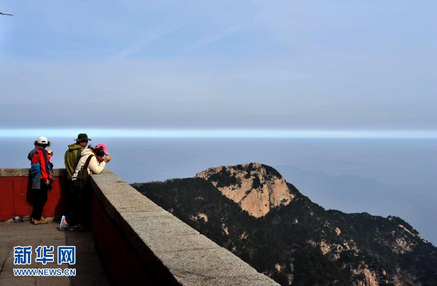 10月30日,游客在泰山山頂觀看“一線天”奇觀。當(dāng)日,泰山山頂出現(xiàn)“一線天”奇觀。據(jù)當(dāng)?shù)貧庀蟛块T介紹,“一線天”景觀形成的氣象、地理原因比較復(fù)雜,與空氣中出現(xiàn)大范圍逆溫層有關(guān),在泰山地區(qū)也比較罕見(jiàn)。新華社記者徐速繪攝