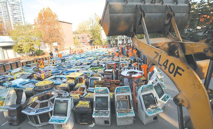 “金鯊銀鯊”、“捕魚達人”、“黃金萬兩”……13日,濟南警方集中銷毀了598臺賭博游戲機。這些賭博游戲機都是今年以來收繳的。這是繼今年2月集中銷毀379臺賭博游戲機后又一次大規(guī)模集中銷毀。 本報記者 戴偉 見習記者 許亞薇 攝影報道